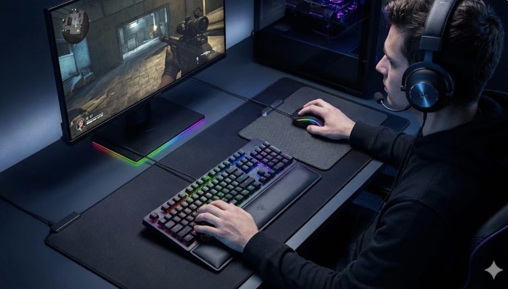 精密な操作が必要なゲームではマウスパッドを重ねて使います。好みの滑り具合を追求できる専用マウスパッドが必要になるからです。デスクマット単体ではゲーム用の繊細な操作感を出せません。