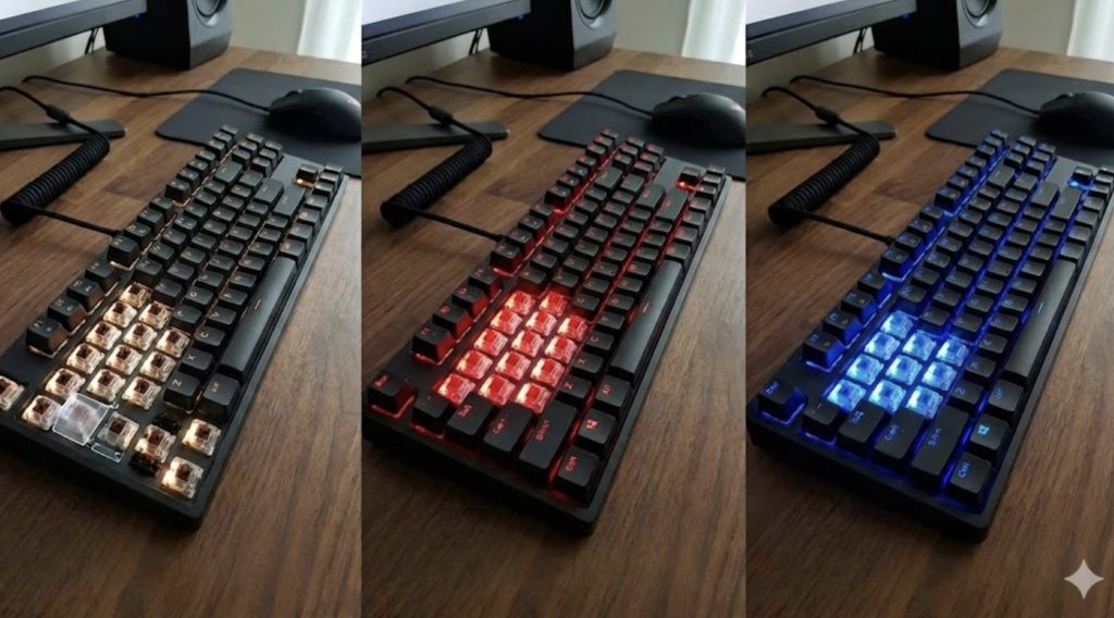 自分はヘッドホンをしていて気にならなくても、別の部屋で寝ている家族から苦情が出ることは多いです。寝室が近い環境では、赤軸や静音設計のものを選ぶよう心がけましょう。